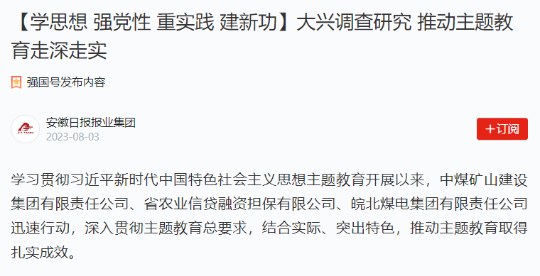 8月3日學(xué)習(xí)強國安徽頻道:皖北煤電大興調(diào)查研究推動主題教育走深走實
