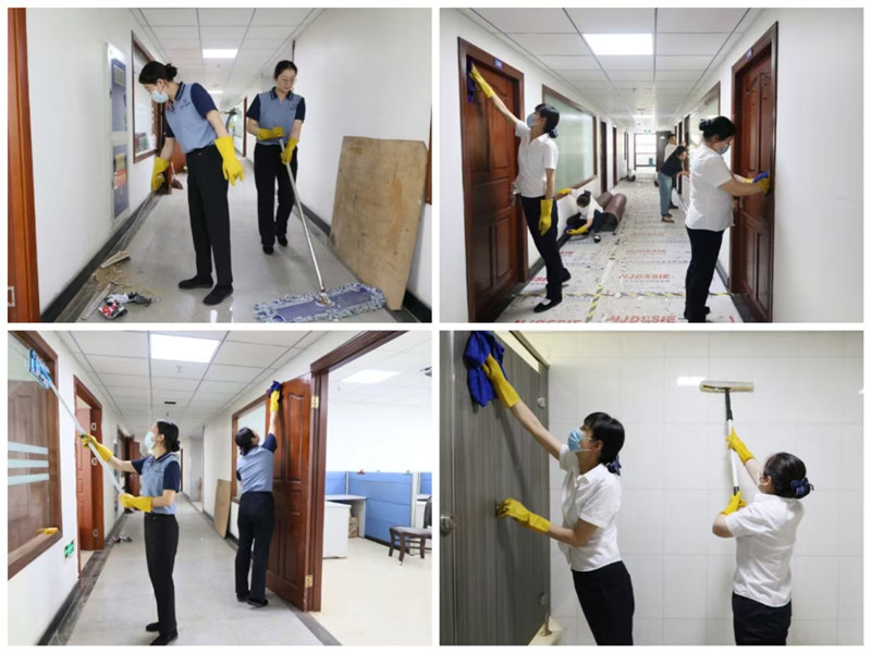 強化責任擔當,主動靠前服務。集團公司改造工程項目建設期間,為盡快讓職工恢復正常辦公秩序,機關分公司組織保潔人員,第一時間對施工完成后交付的樓層進行全方位深度清洗清潔,確保墻面凈、門窗凈、鏡面凈、地面凈,不留盲區(qū)死角,為集團大樓職工提供干凈整潔、舒適溫馨的辦公環(huán)境。