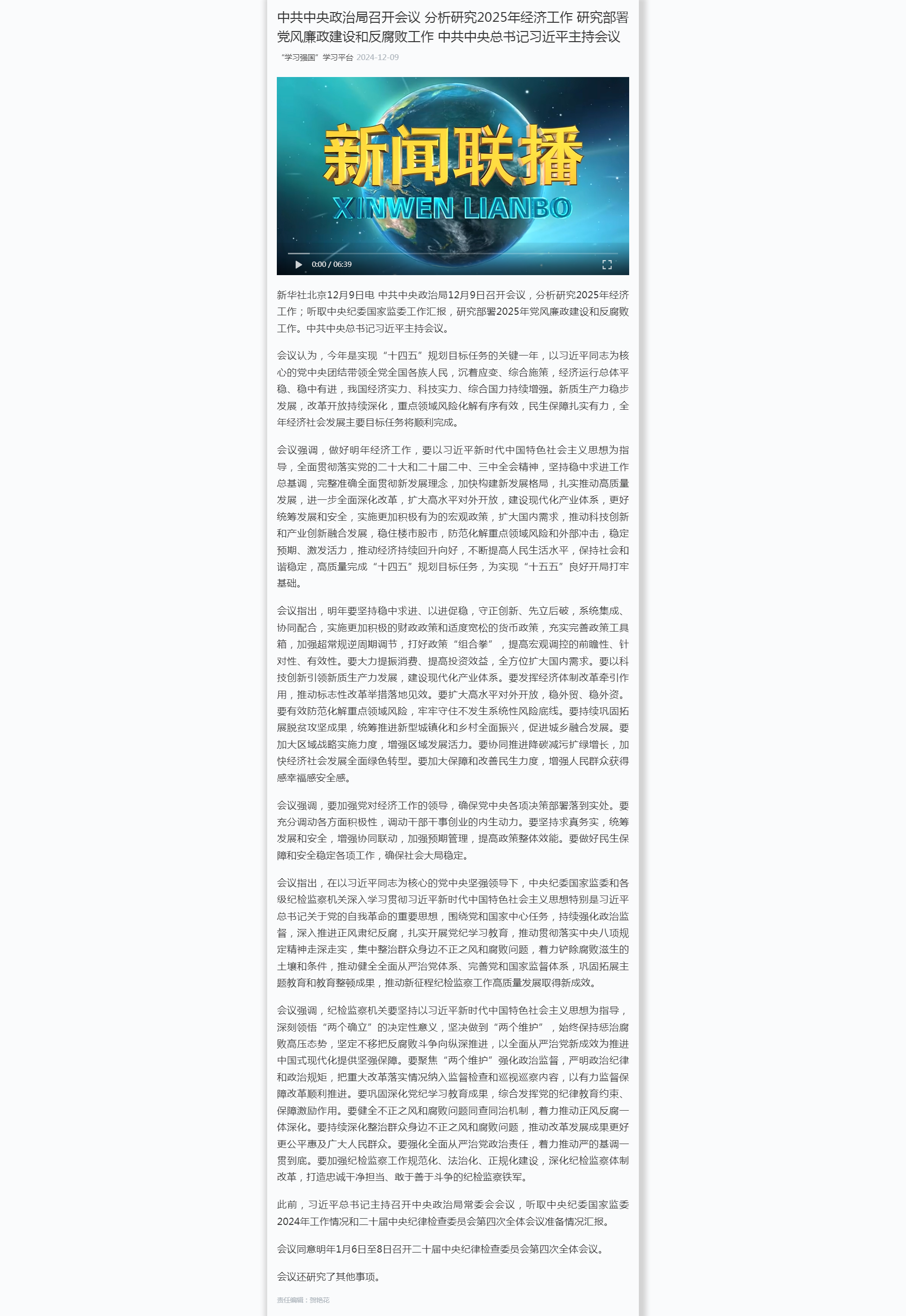 中共中央政治局召開(kāi)會(huì)議 分析研究2025年經(jīng)濟(jì)工作 研究部署黨風(fēng)廉政建設(shè)和反腐敗工作 中共中央總書(shū)記習(xí)近平主持會(huì)議