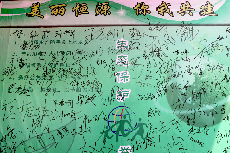 昌恒公司緊扣自然環(huán)境污染、節(jié)能減排等方面制作了宣傳條幅,印制了環(huán)保宣傳彩頁,在礦區(qū)食堂門口設置了固定宣傳點。青年義工化身“美麗使者”利用下班時間通過向來往職工群眾發(fā)放環(huán)保彩頁、講解環(huán)保知識等方式,不斷增強廣大職工群眾的環(huán)保意識,積極營造“綠色礦山我們共建 美好生活我們共享”的濃厚氛圍,呼吁大家為加快建設綠色和諧礦山做出積極貢獻。